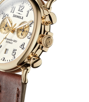 Put it on for the first time, but feel like you've had it forever. With a polished gold PVD case and two gold-toned sub-dials, this 41mm Runwell Chrono is a timepiece that has a generational appeal. Its warm matte ivory velvet dial is punctuated by a calendar aperture and gold-toned Super-LumiNova hands. A rich cattail brown leather strap adds even more character to this casually captivating timepiece.
