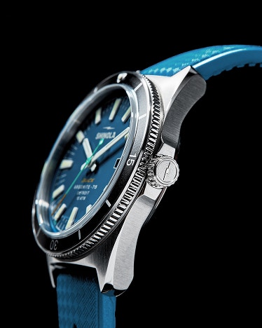 The Duck 1040 features thick sapphire crystal and screw-down crown to achieve a 10 ATM depth rating. The 40mm stainless steel case sports a unidirectional bezel.