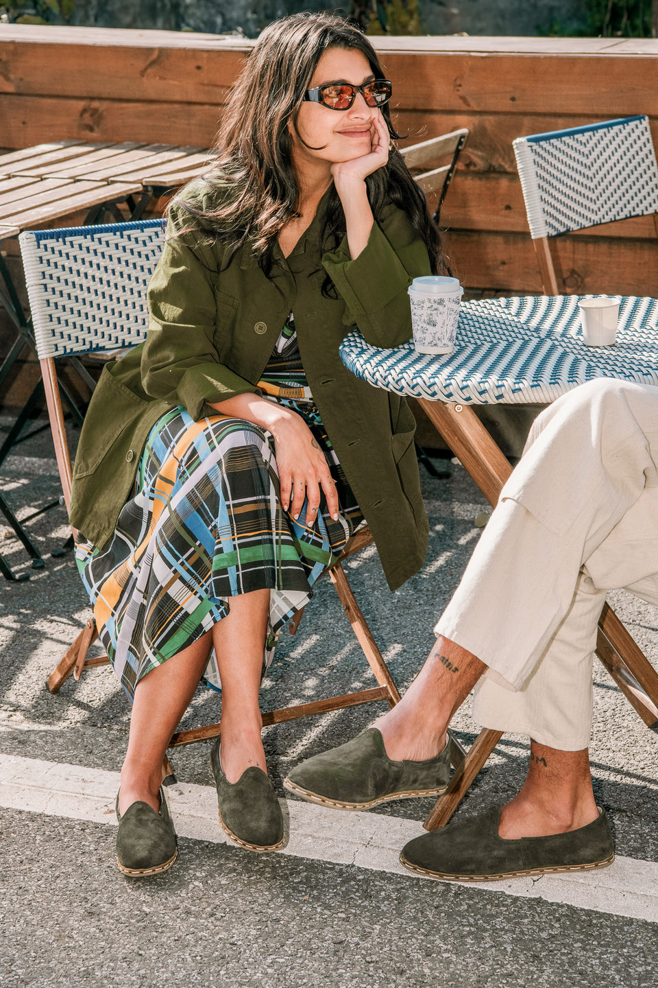 Our Walker Street Sabah is made from a deep, dark green with touches of blue & grey depending on the light. It's a super soft suede that'll be comfortable from the get-go and age beautifully. A color unlike we've made before, we loved this tone from the moment we laid eyes on it. The darker hue give this pair versatility & durability, whereas the green & blue provides a pop of personality. This will be a fantastic Spring and Summer Sabah!